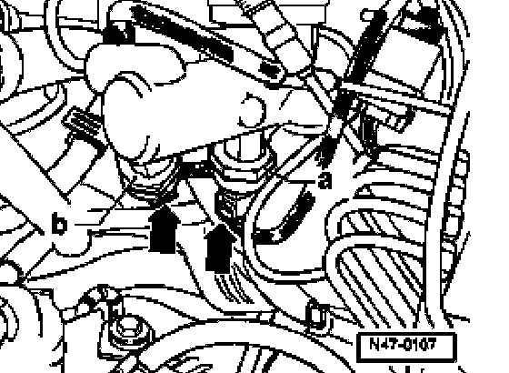 - Draw off as much brake fluid as possible from brake fluid reservoir using brake filler and bleeder unit VAS 5234.
