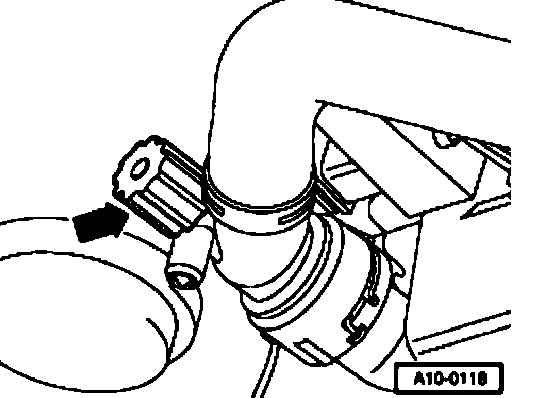 - Remove coolant hose for oil cooler (arrow) and drain coolant from engine.