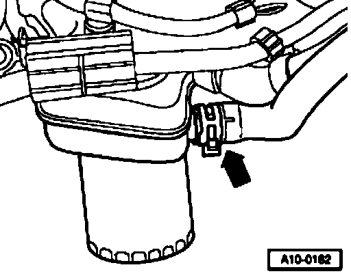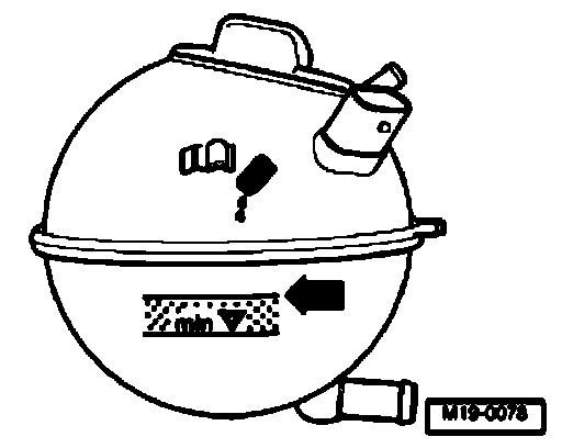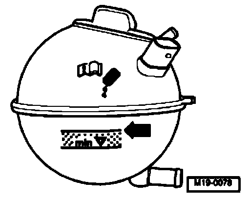- Fill coolant slowly up to upper hatched field mark (arrow) on expansion tank.