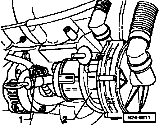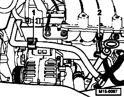 - Pull fuel supply line -1- and fuel return line -2- off connections