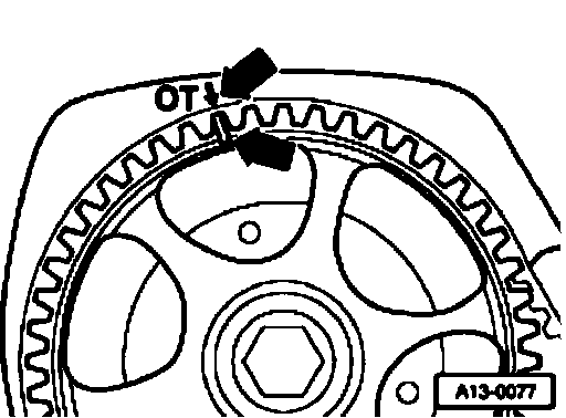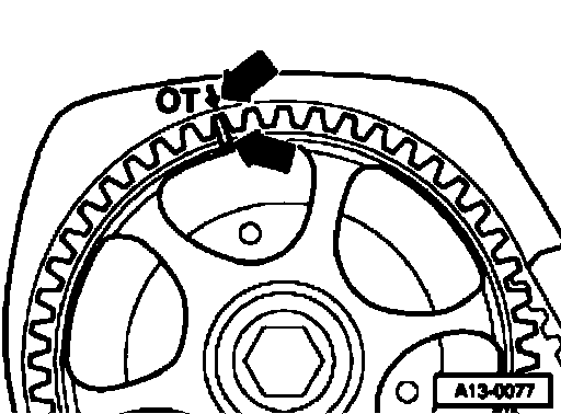 - Set camshaft pulley to TDC No. 1 cylinder by turning the crankshaft 1. Mark on camshaft pulley must align with (arrow) on toothed belt guard.