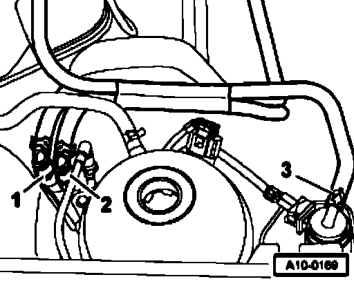 - Disconnect hose -3- from solenoid valve for Evaporative Emission (EVAP) Canister Purge Regulator Valve