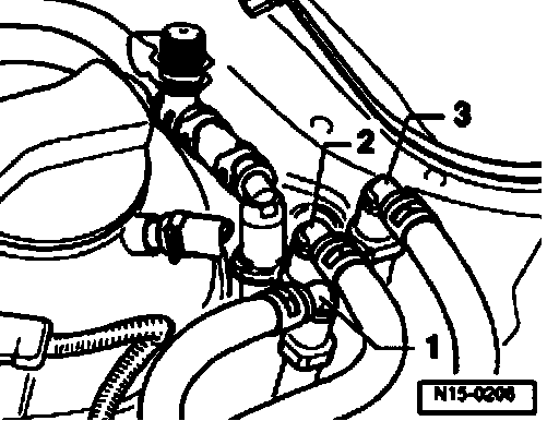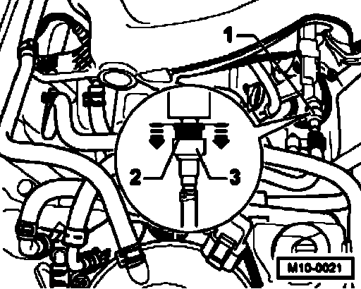- Disconnect fuel supply line -1- off union by pressing locking ring -2- into union -3-.