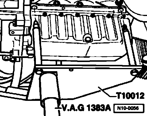 - Lift engine and transmission lightly using engine/transmission jack V.A.G. 1383A.