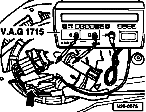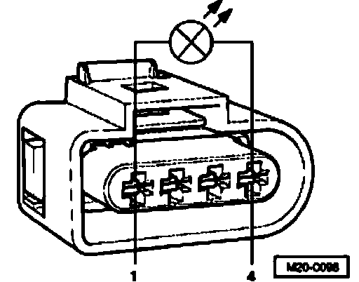 - Connect diode test lamp VAG 1527 B with auxiliary cables from VAG 1594 A to outer contacts of connector.