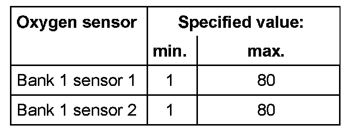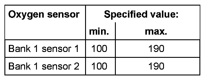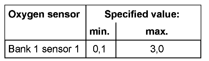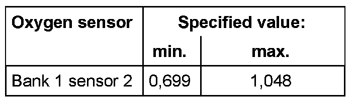 The values of the individual oxygen sensor signal outputs must reach the specified value or must be within the min.- and max.- limits.