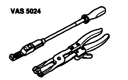^ Assembly tool VAS 5024 or hose clip pliers V.A. G 1921 are recommended for installing spring-type clips.
