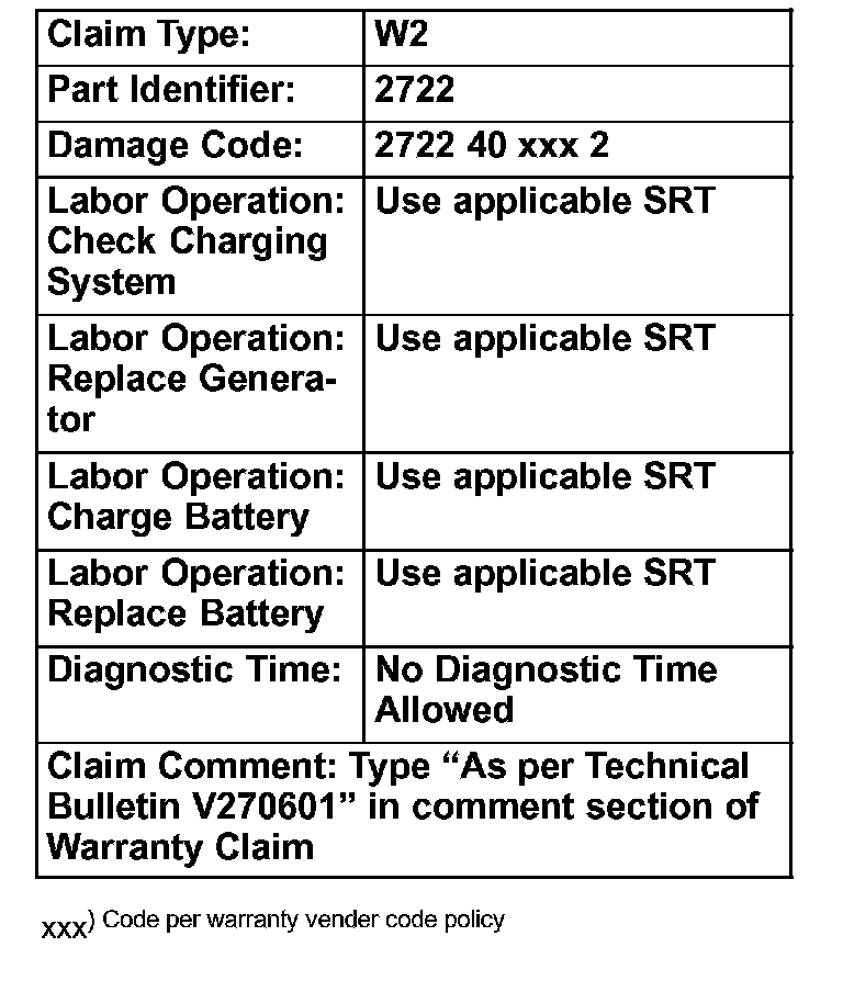 This TB should only be performed when vehicle has a battery related issue; meaning that the battery was discharged and requires charging or replacement per Midtronics tester (MCR34OV or In-Charge 940). If the generator must be replaced as instructed in this bulletin, the claim must be accompanied with a Midtronics test code showing that the battery required charging or replacement. Failure to include the Midtronics test code may result in a denied claim.