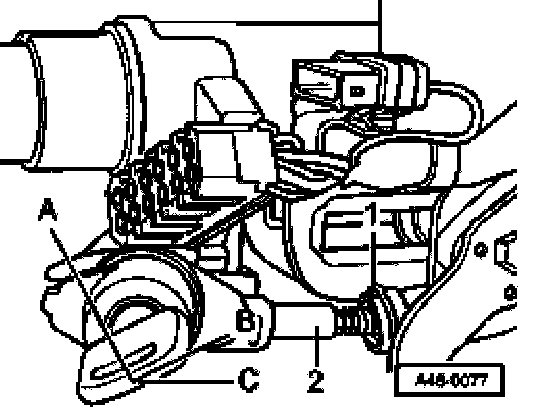 If the ignition switch has been removed, the distance -dimension "a"- between steering wheel and spring coil housing must be readjusted.