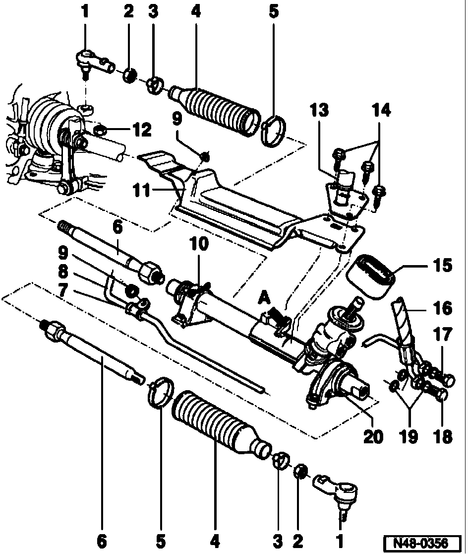 ^ To grease the rack only use steering gear grease AOF 063 000 04.