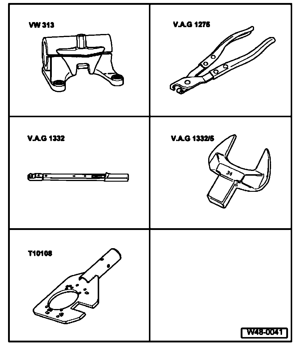 - Tighten clamp with hose clamp pliers V.A.G. 1275.