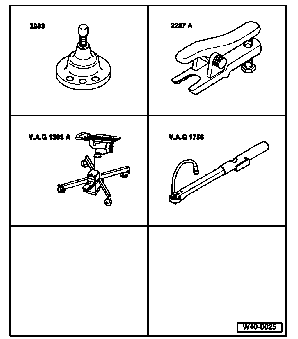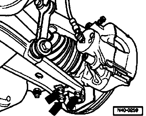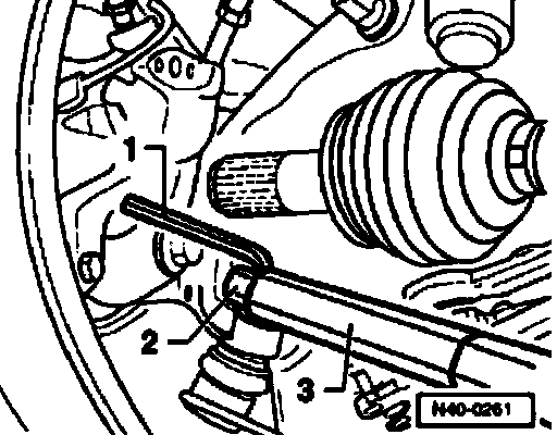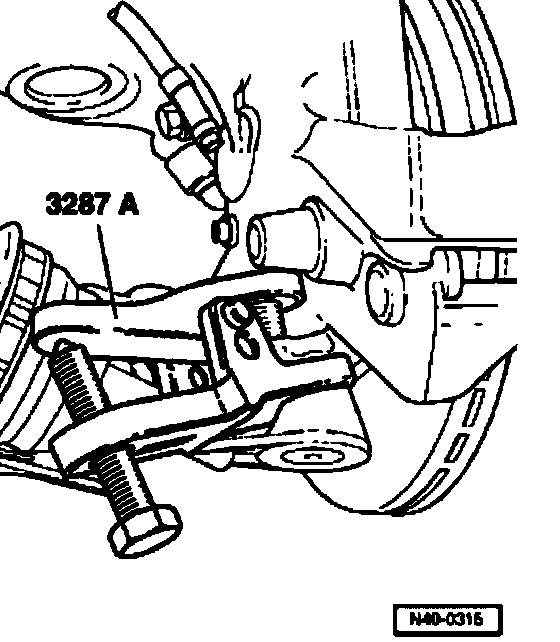 ^ Place engine/transmission jack V.A. G1383/A, or similar, underneath to ensure safety (danger of accident through falling parts when pressing out the ball joint).