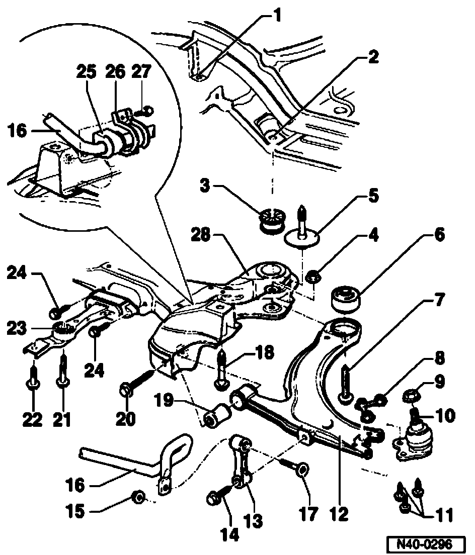 27. Hex bolt, 25 Nm (18.4 ft. lbs.)