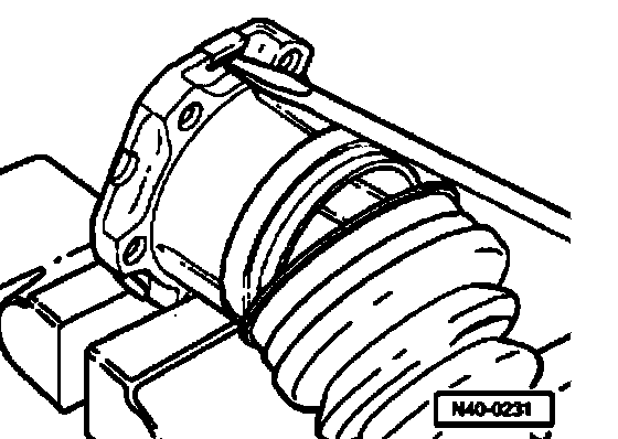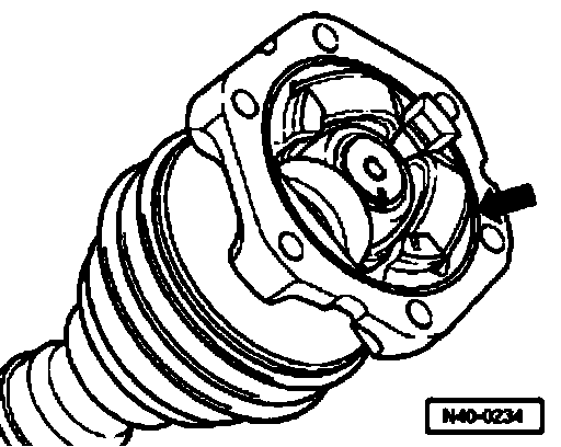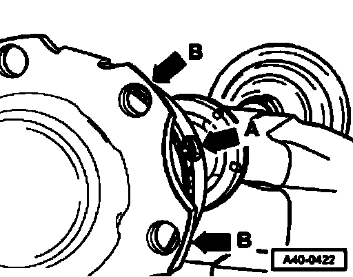 Note: For a better alignment of the multi-point socket head bolts when mounting the axle shaft, it is necessary that the clamping ear of the clamp - arrow A - is placed between the fixing flanges from the joint -arrow B - .