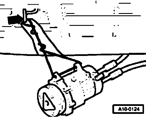 - Secure air conditioner compressor to towing eye (arrow) so that refrigerant lines/hoses are not under tension.