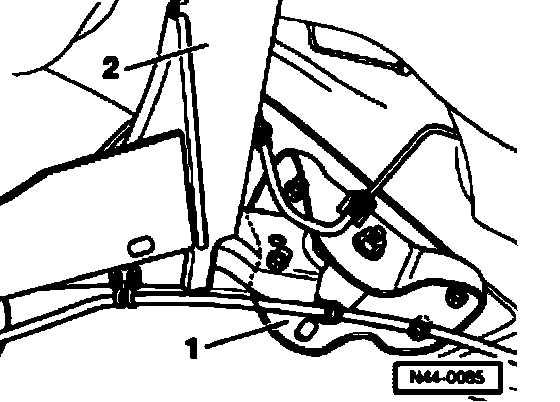 - Slide bearing bracket -1 - laterally. 2 - Rear axle beam - Tighten bolts to 75 Nm (55 ft. lbs.).
