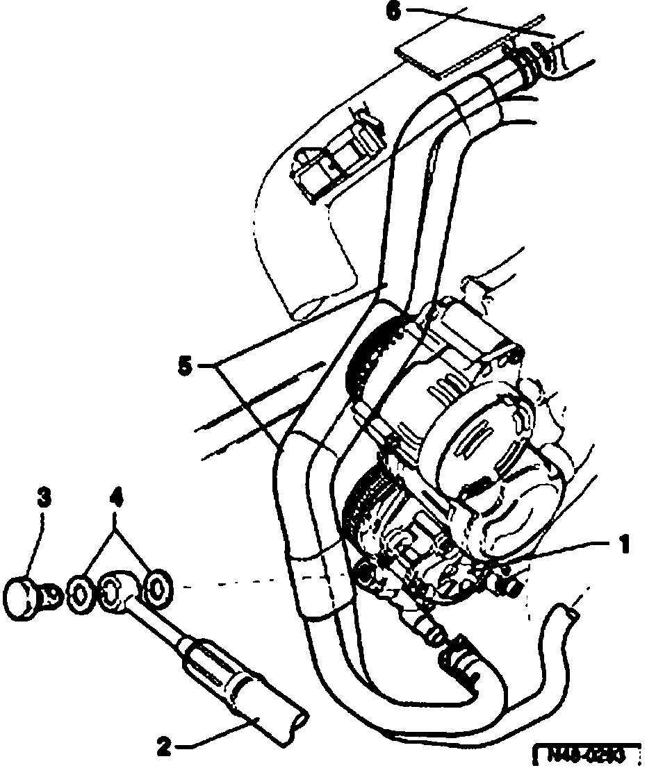 Securing pressure line and intake hose on vehicles with TDI engine and no A/C
