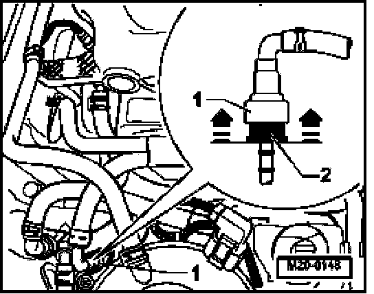 - Pull off supply line -1- and collect leaking fuel with a cloth.