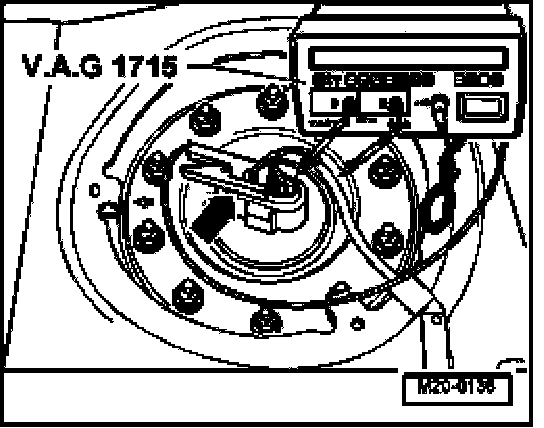 - Quantity of fuel delivered by fuel pump depends on battery voltage. Therefore connect multimeter to vehicle battery using adapter cables from V.A.G 1594 A.