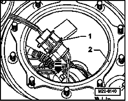 - Place connector -1- in direction of arrow against fuel gauge sender behind fuel supply unit.