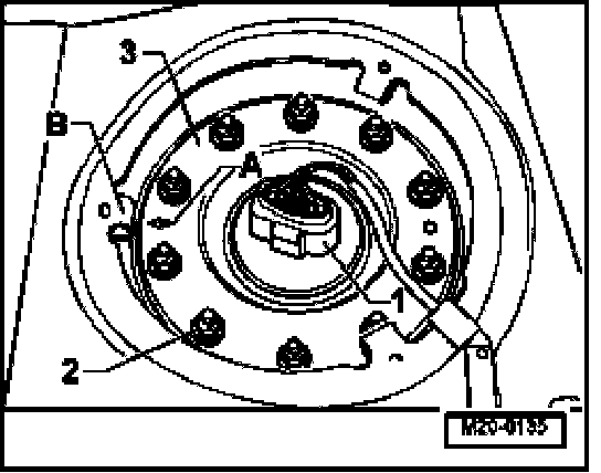 - Install locking device -3- so that arrow -A- is parallel to vehicle longitudinal axle and faces backward, -B-.
