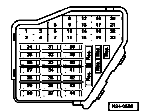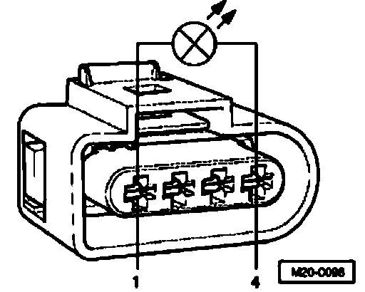 - Connect diode test lamp VAG 1527 B with auxiliary cables from VAG 1594 A to outer contacts of connector.