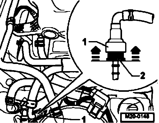 - Pull off supply line -1- and collect leaking fuel with a cloth.