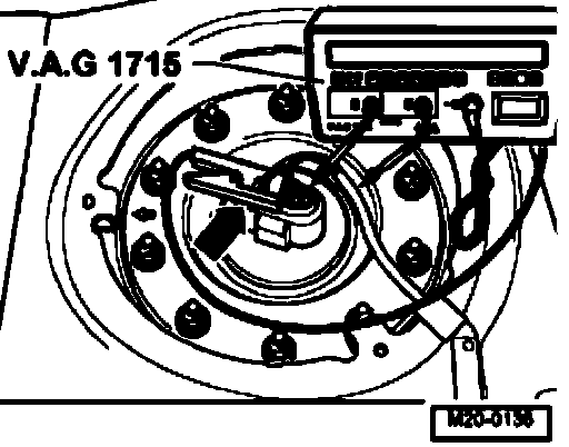 - Quantity of fuel delivered by fuel pump depends on battery voltage. Therefore connect multimeter to vehicle battery using adapter cables from VAG 1594 A.