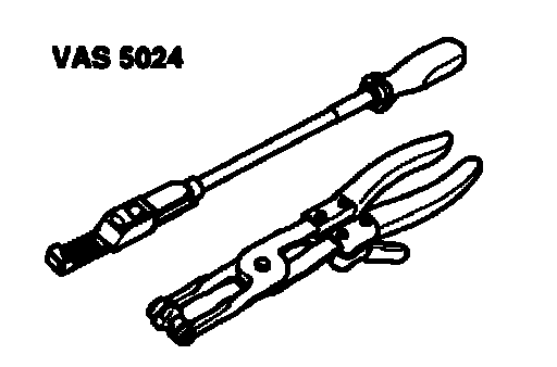 ^ Assembly tool VAS 5024 or hose clip pliers V.A.G. 1921 are recommended for installing spring-type clips.