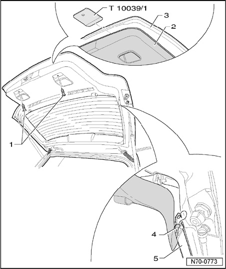 - Slide Wedge T10039/1 between trim - 2 - and lid - 3 -.
