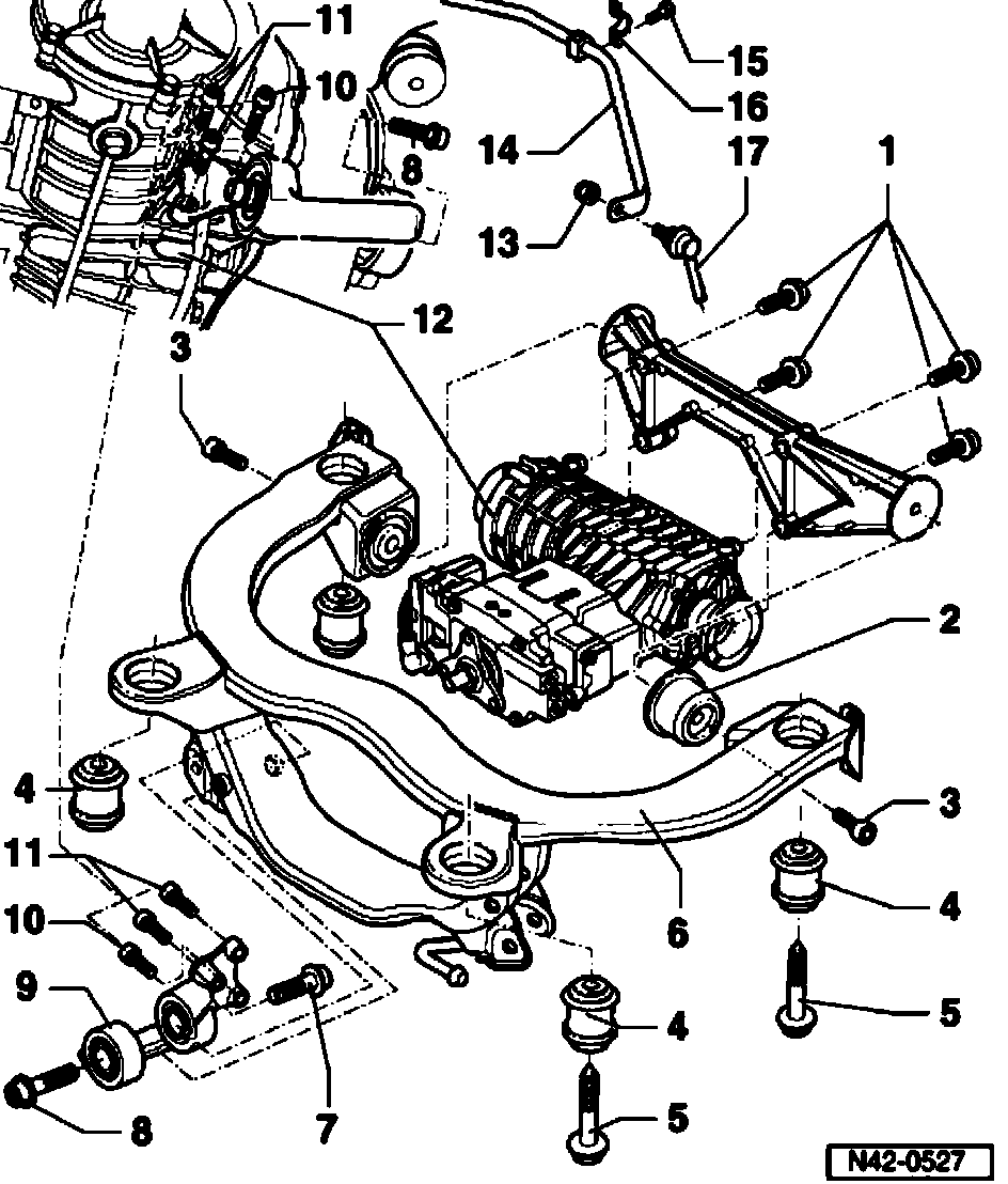 Subframe with final drive (vehicles with all-wheel drive), assembly overview