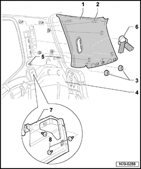 Upper C-Pillar Trim, Assembly Overview (Golf Without Side Curtain Protection)