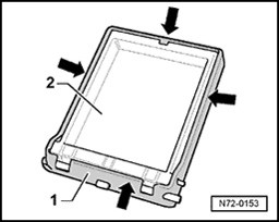 - Press in locking lug - 1 - - arrow - and open center armrest.