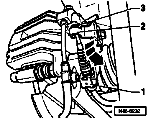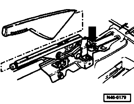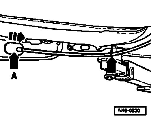 - Remove rubber grommet -arrow A- in trailing arm.
