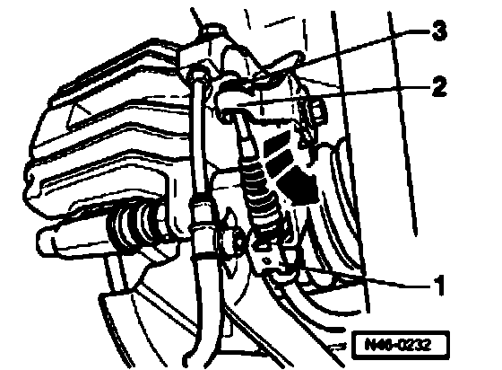 - Press brake lever -2- in direction of arrow and unhook brake cable -3-.