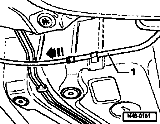 - Pull parking brake cable out from guide tube -1- in direction of -arrow-.