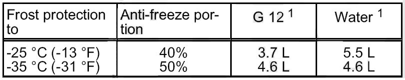 • If for climatic reasons a greater frost protection is required, the amount of G12 can be increased, but only up to 60% (frost protection to about -40°C (-40°F), as otherwise frost protection is reduced again and cooling effectiveness is also reduced.
