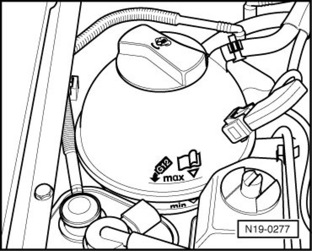• Only use coolant additive G 12 according to TL VW 774 F. Identifying feature: violet