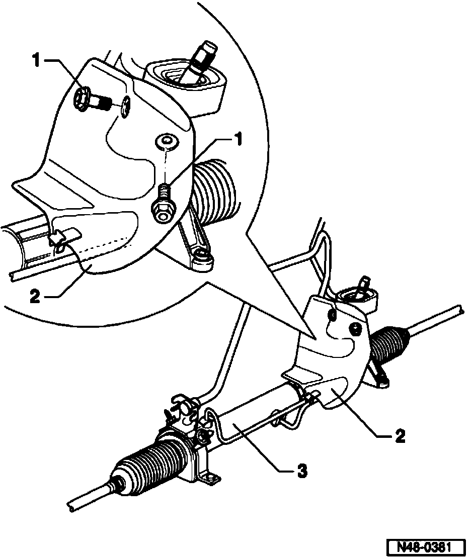 Power steering gear with heat shield (vehicles with all-wheel drive), assembly overview
