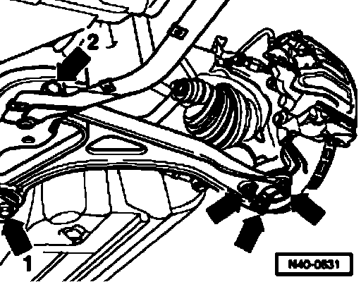 - Remove hex bolts -1 - and - 2 - and take out control arm.