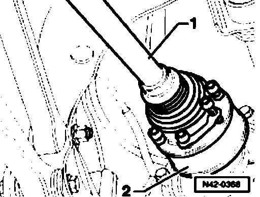 - Disconnect axle shaft - 1 - from final drive flange shaft - 2 -