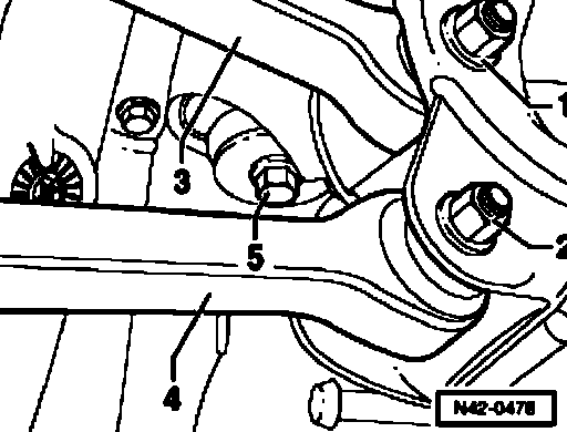 Transverse link to subframe Use new nuts and bolts! 70 Nm (51 6 ft. lbs.) plus an additional 1/4 turn 90°