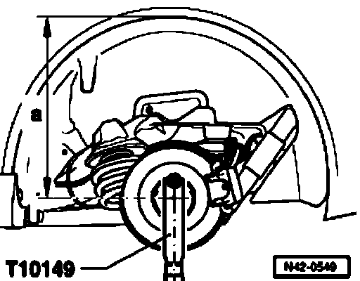 Tightening bearing bracket is only possible, when the measured value - a - from the middle of wheel hub to lower edge bordering wheel housing is reached.