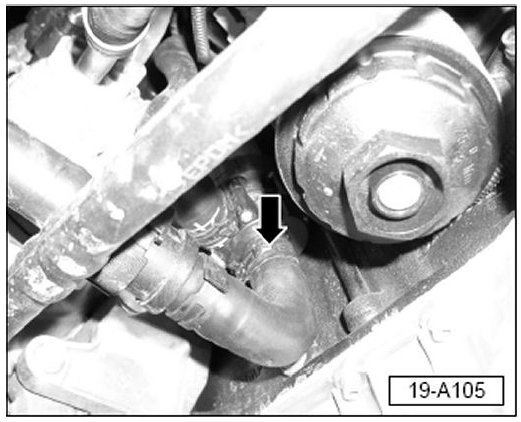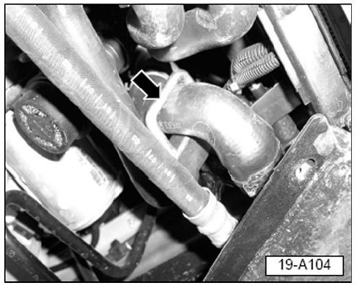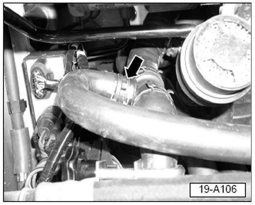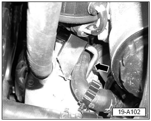 - Clamp off after-run coolant hose (arrow).