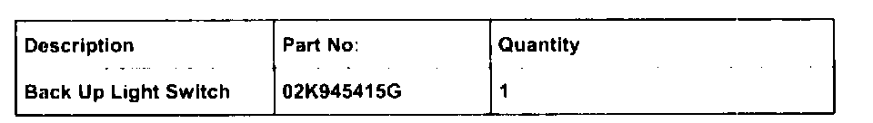 ^ Install new back up light switch, Part No. 02K945415G. See ElsaWeb. Repair Manual Group 34 - Manual Transmission Controls.