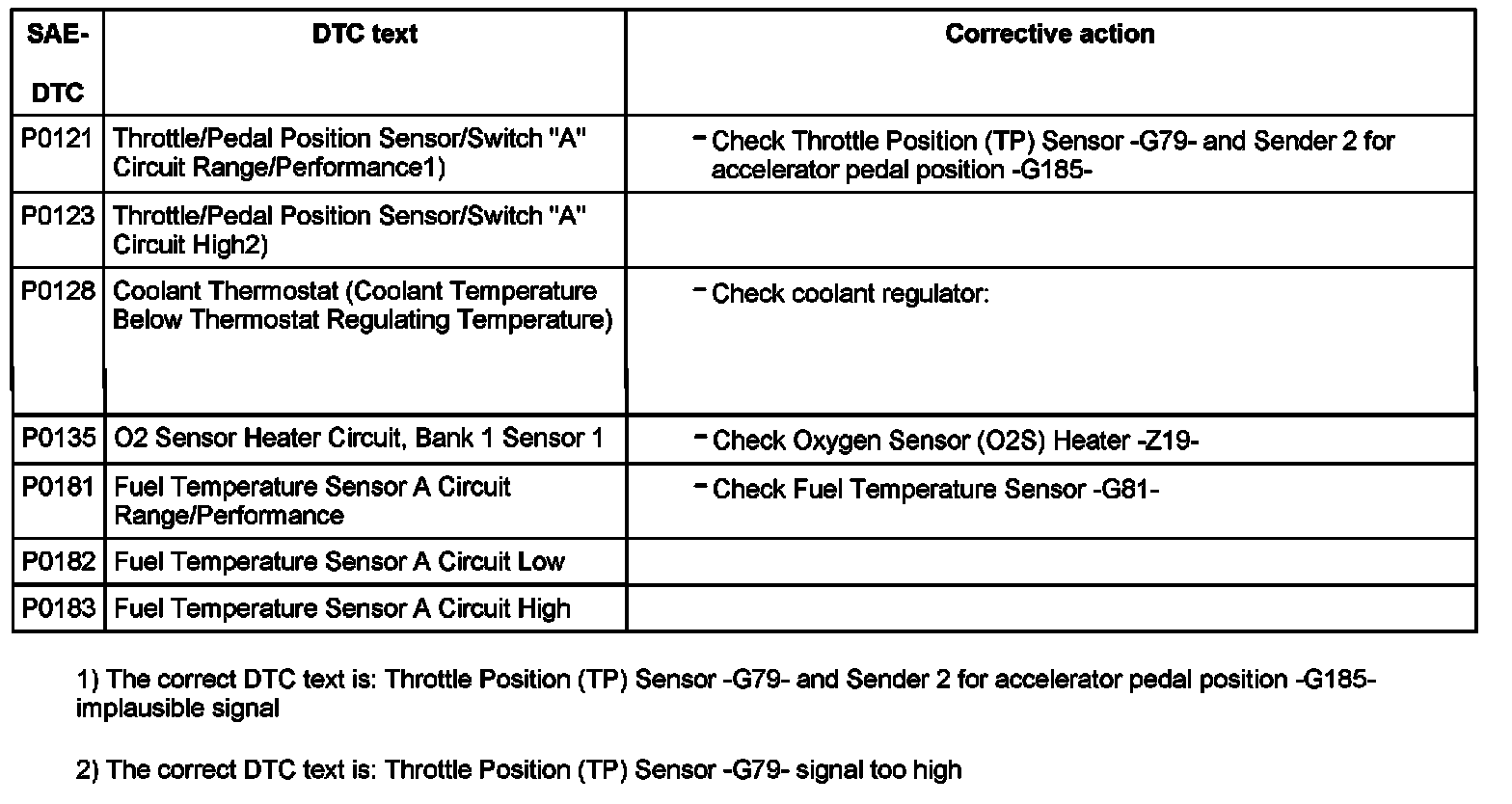 DTC P0121 - P0183: