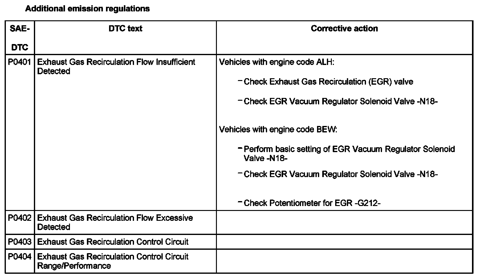 DTC P0401 - P0404: