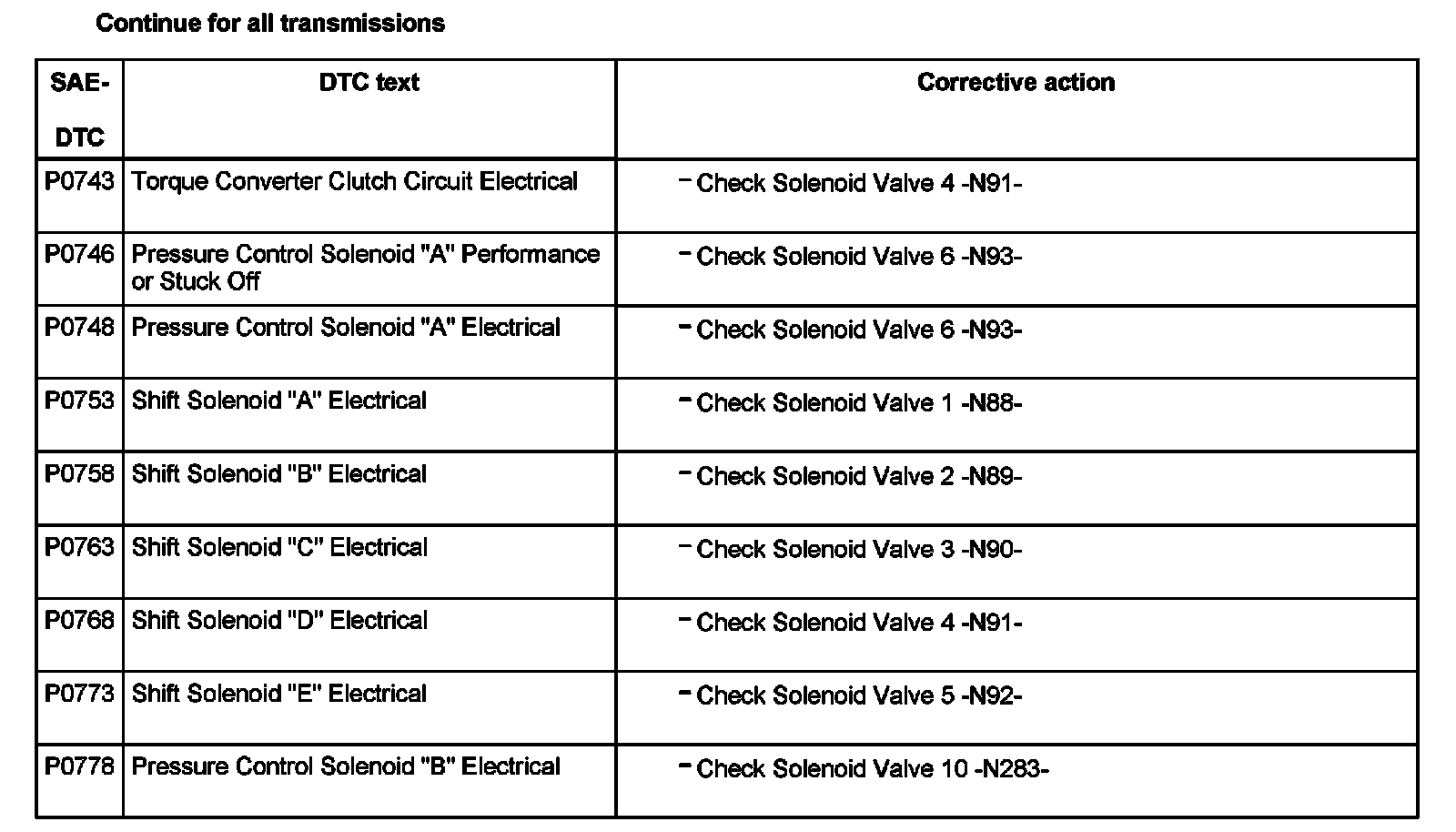 DTC P0743 - P0778:
