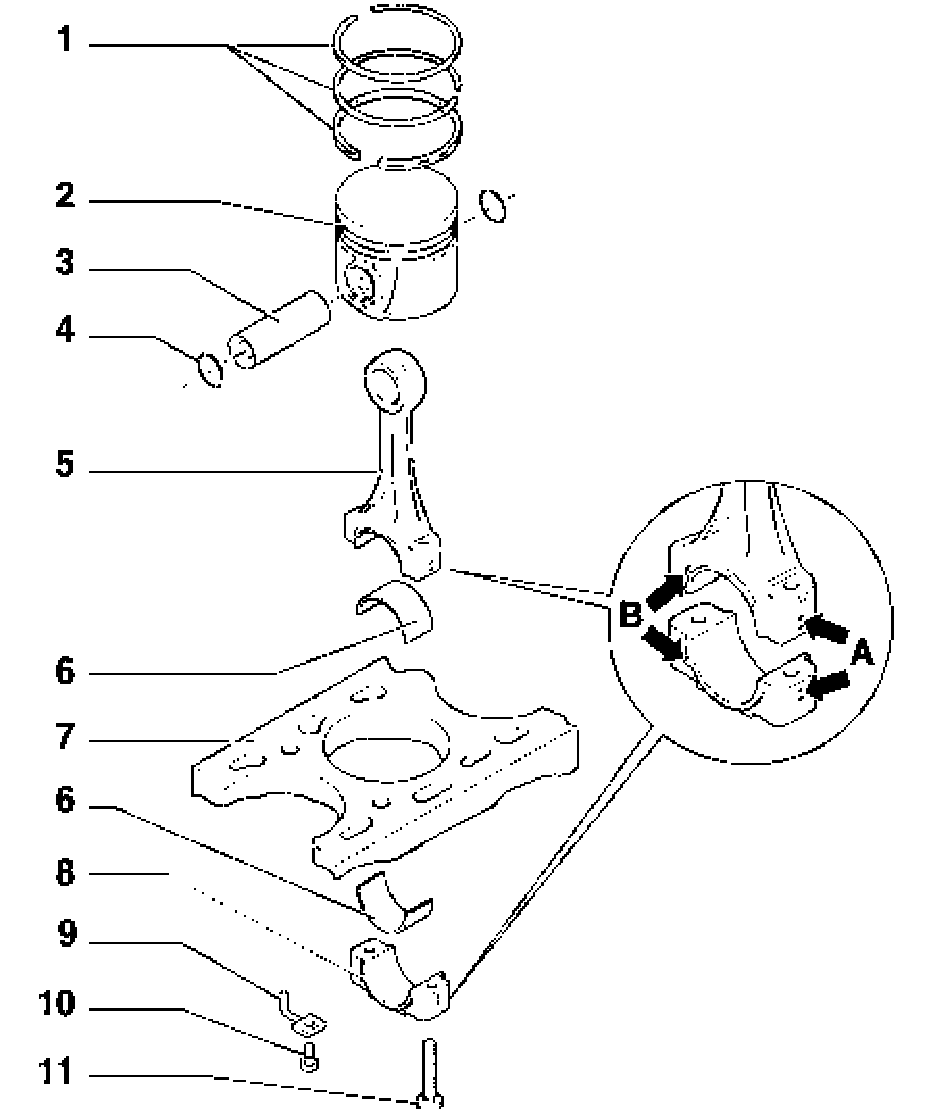 Piston and connecting rods, servicing