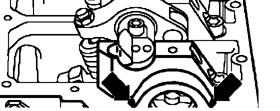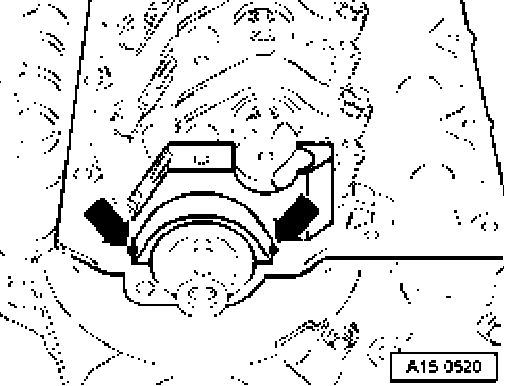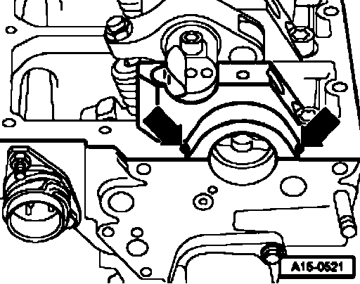 - Apply a drop of sealant AMV1 7400401 (approximately 5 mm diameter) - arrows - to both side edges of rear bearing cap/cylinder head sealing surfaces.